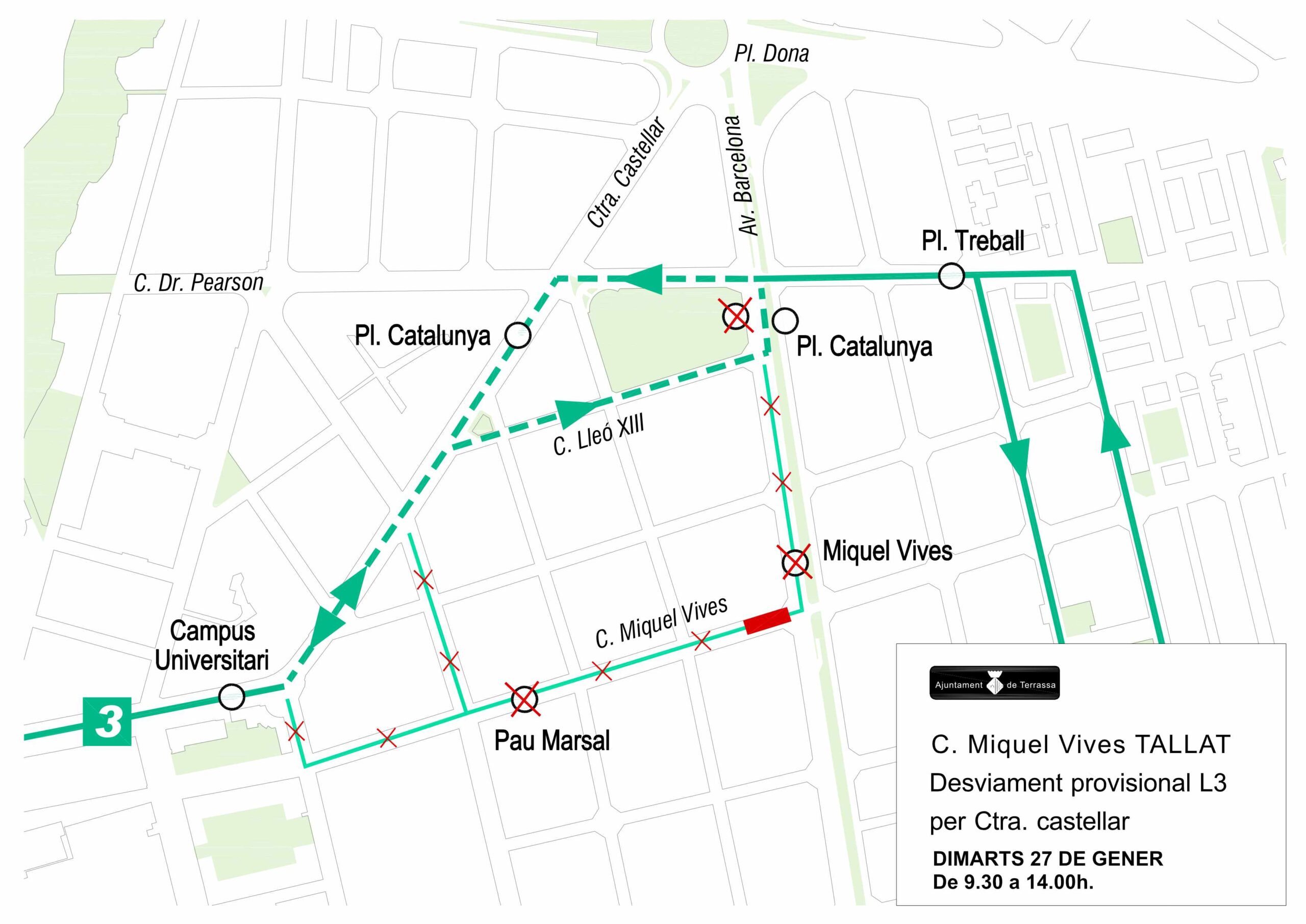 Debido al corte del Paseo 22 de julio,(dirección Rambla d'Egara), los autobuses de la L13 modificarán su recorrido.