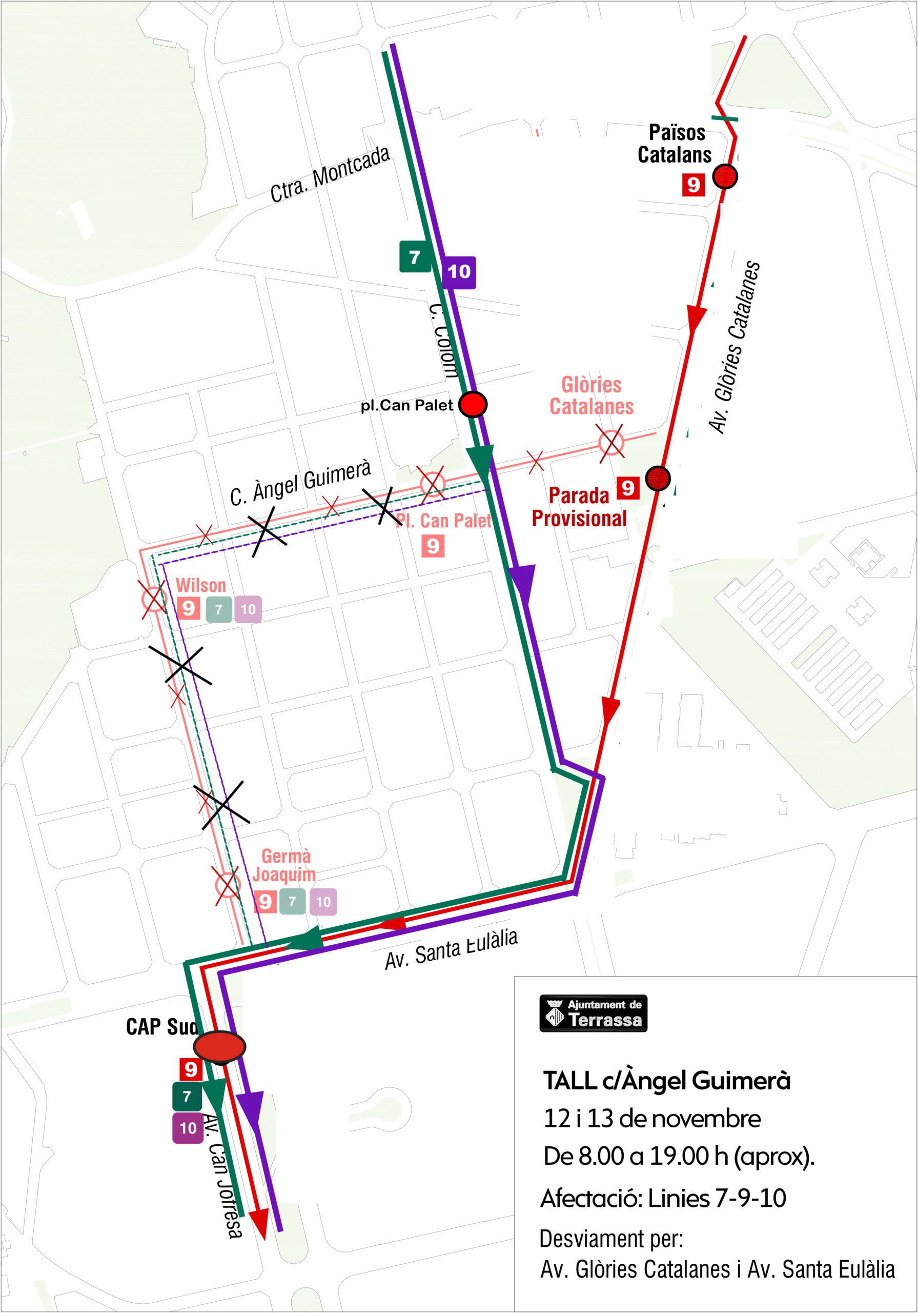A causa de les obres a la ctra. de Rubí, els autobusos de les línies L8 i L9 no podran fer el seu recorregut habitual.